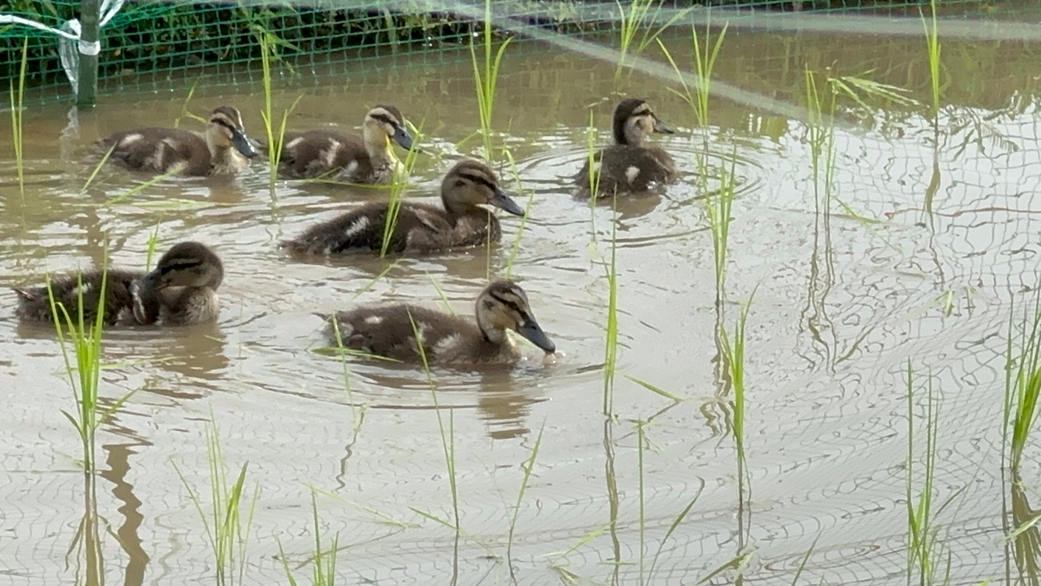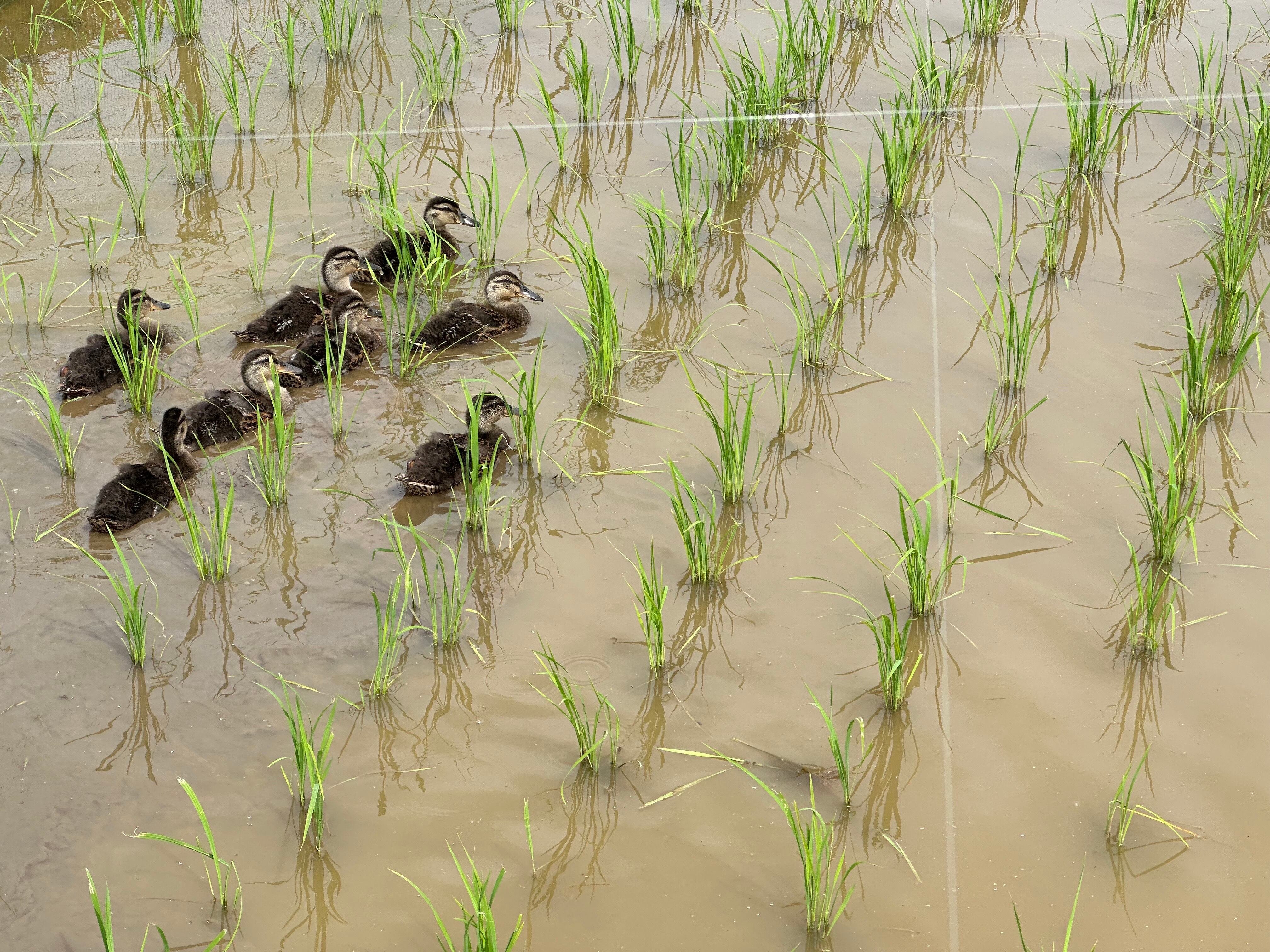 ・除草剤を使わず、鴨が稲の間に生えてくる草を食べてくれました!(稲も踏み倒されて、より強く育ちました…!)